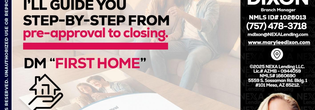 first time home buyer - Marylee Dixon -Branch ManagerHi, my name is Marylee Dixon. I’m a Loan Officer with NEXA Lending LLC., offering personalized mortgage solutions, fast customized quotes, great rates and service with integrity.