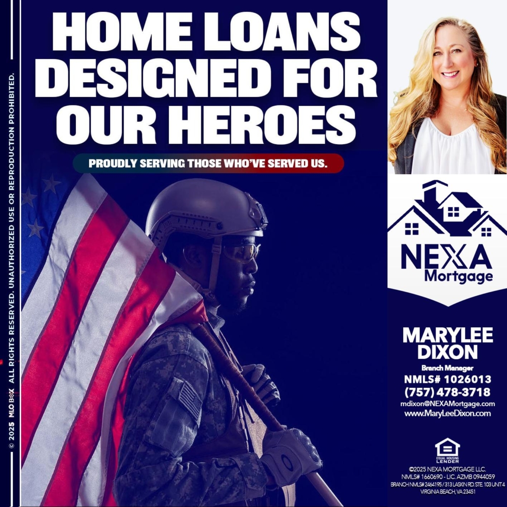 Hi, my name is Marylee Dixon. I’m a Loan Officer with NEXA Mortgage LLC., offering personalized mortgage solutions, fast customized quotes, great rates and service with integrity.