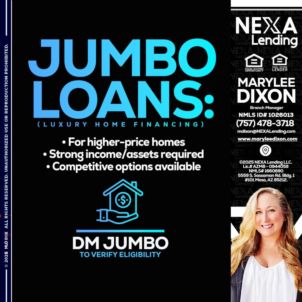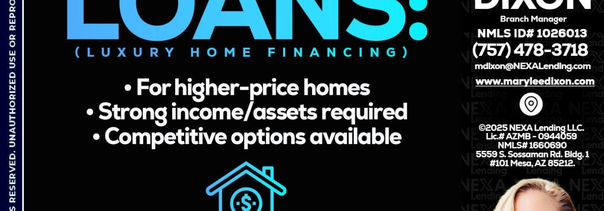 Hi, my name is Marylee Dixon. I’m a Loan Officer with NEXA Lending LLC., offering personalized mortgage solutions, fast customized quotes, great rates and service with integrity.