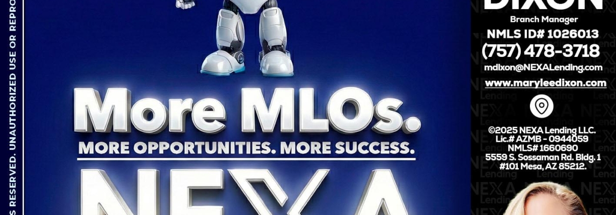 MORE MLOs - Marylee Dixon -Branch ManagerHi, my name is Marylee Dixon. I’m a Loan Officer with NEXA Lending LLC., offering personalized mortgage solutions, fast customized quotes, great rates and service with integrity.
