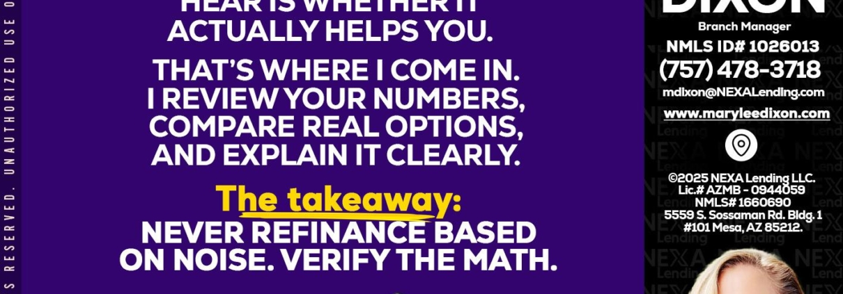 Hi, my name is Marylee Dixon. I’m a Loan Officer with NEXA Lending LLC., offering personalized mortgage solutions, fast customized quotes, great rates and service with integrity.