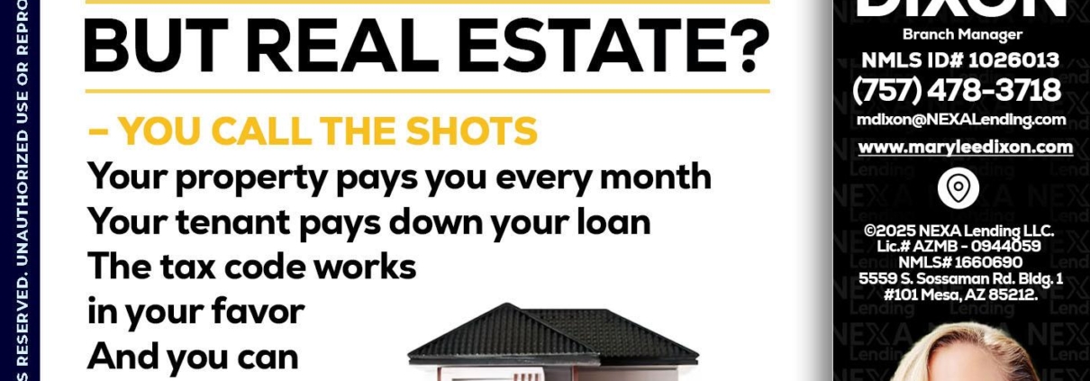 Hi, my name is Marylee Dixon. I’m a Loan Officer with NEXA Mortgage LLC., offering personalized mortgage solutions, fast customized quotes, great rates and service with integrity.