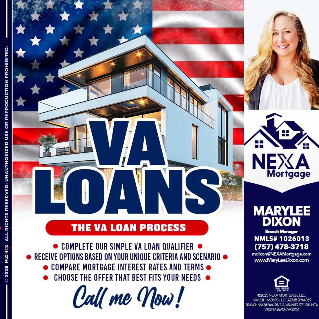 VA LOANS - Marylee Dixon -Branch ManagerHi, my name is Marylee Dixon. I’m a Loan Officer with NEXA Mortgage LLC., offering personalized mortgage solutions, fast customized quotes, great rates and service with integrity.
